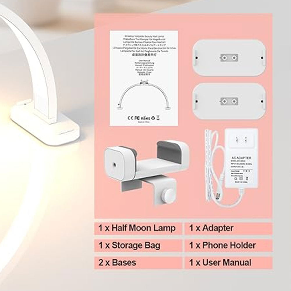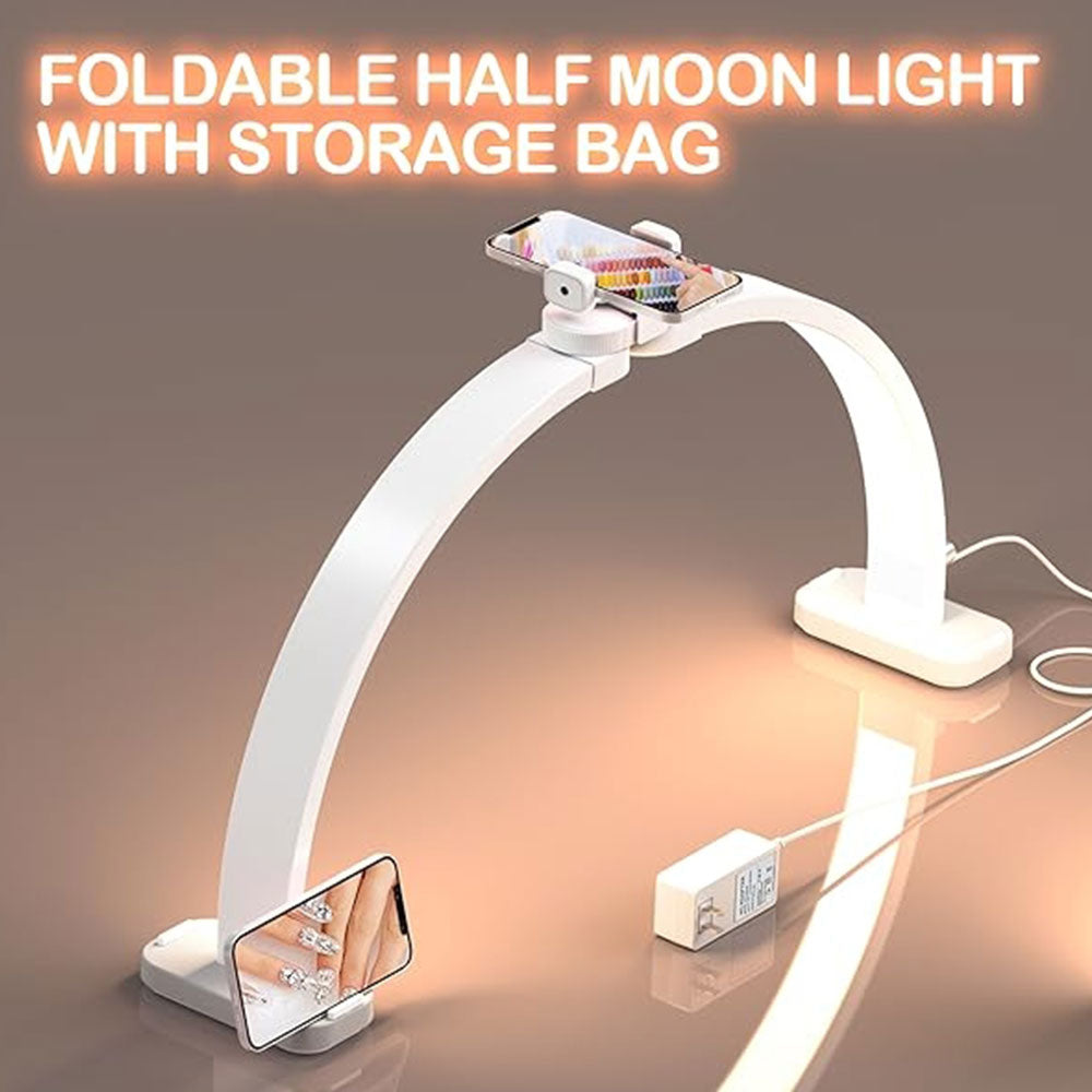 Foldable Half Moon Light with Storage Bag – Professional Lighting for Makeup, Beauty & Nail Art